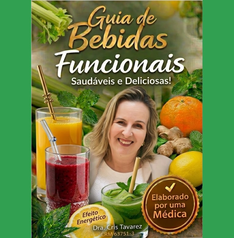 Hoje, você pode receber o ebook Bebidas Funcionais da Dra. Cris Tavares por apenas R$ 10 — um valor simbólico para cobrir custos.